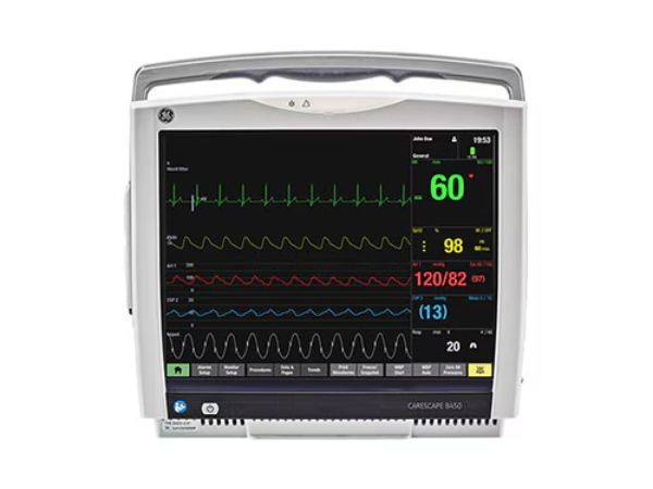 The CARESCAPE™ B450 monitor features a robust, simple design and compact size, making it ideal for versatile patient care and easy mobility throughout the hospital.